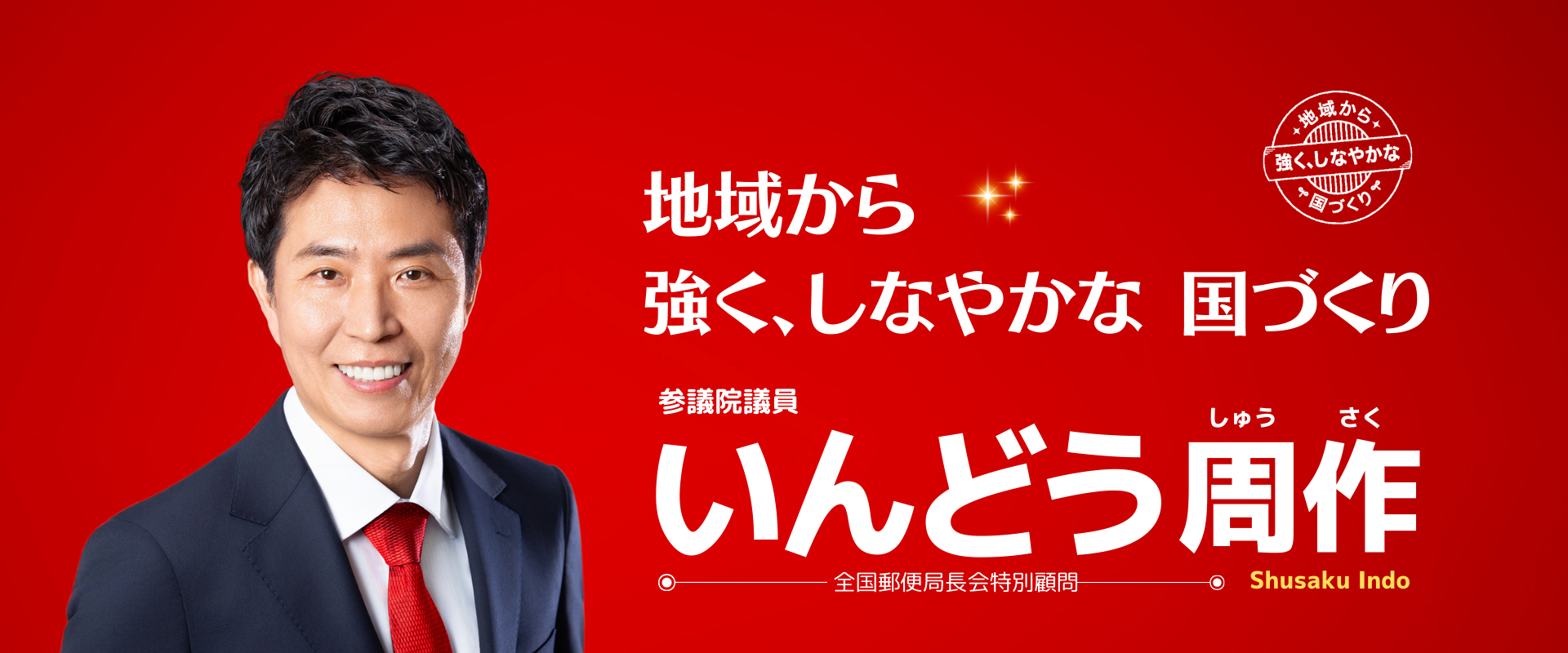 これまで培ってきた人脈や経験を活かし、「地域から」、国家観、歴史観に基づく軸を持ち=「強く」、時代の流れにも柔軟に対応できる=「しなやかな」、国づくりを実現します。