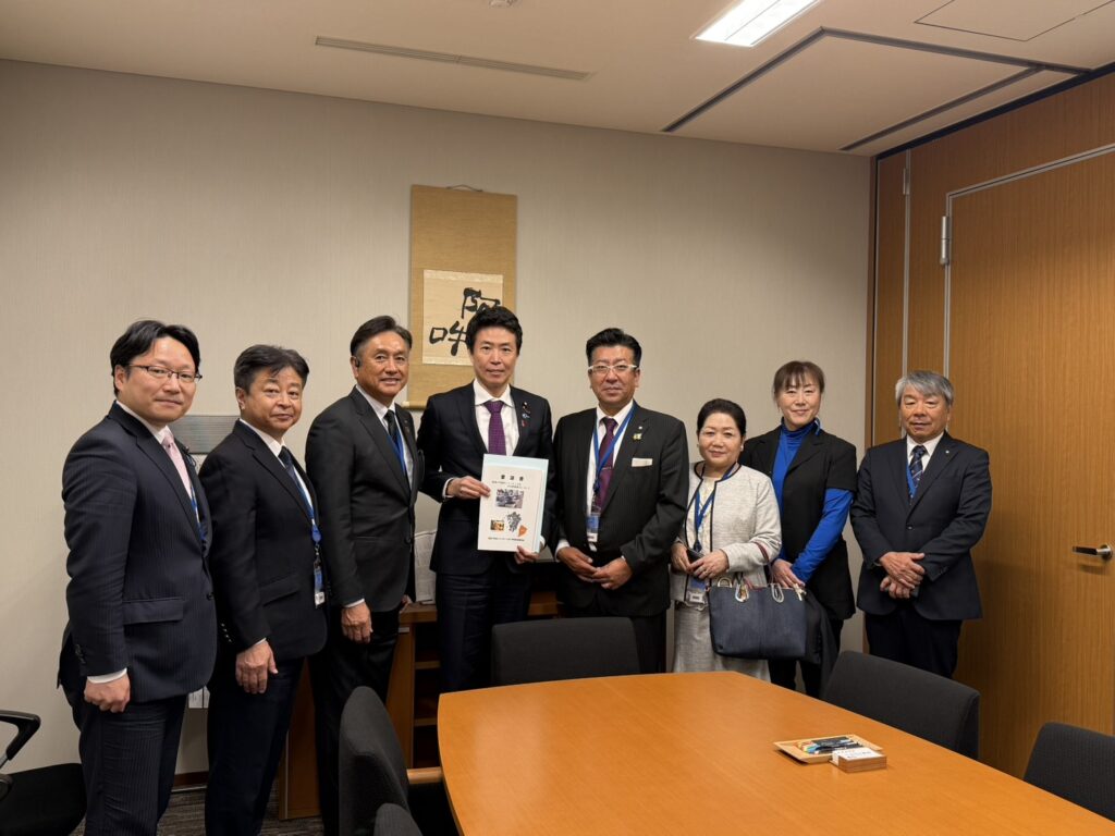 11月11日、国道3号植木バイパス (1工区) 早期実現期成会の皆さま(※)が事務所へ訪問され、国道3号植木バイパス 1工区の早期事業化についての『要望書』をいただきました。皆さまからいいただいた陳情書の実現に向け、尽力してまいる所存です。