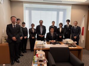 事務所訪問 2025年11月17日 最終更新日時 : 2025年11月17日 周作犬童 11月17日、島根県出雲東地区郵便局長会の江角会長、地区会内の役員、夫人会、及び皆さまが議員会館事務所を訪問され意見交換を行いました。 FacebookXBlueskyHatena