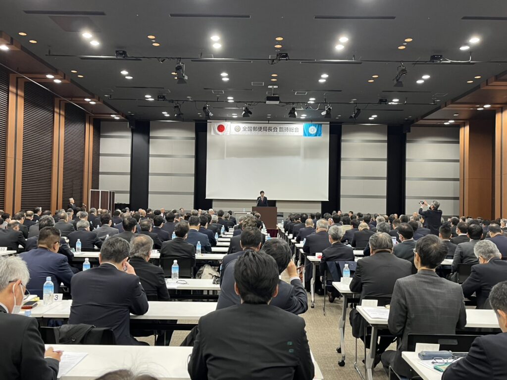 11月29日、全特臨時総会に出席し、全国の郵便局長の皆さんのご支援に対する御礼を改めてお伝えするとともに、今後の活動に関する決意を申し上げました。また、同会議において、全特特別顧問に就任させて頂きました。