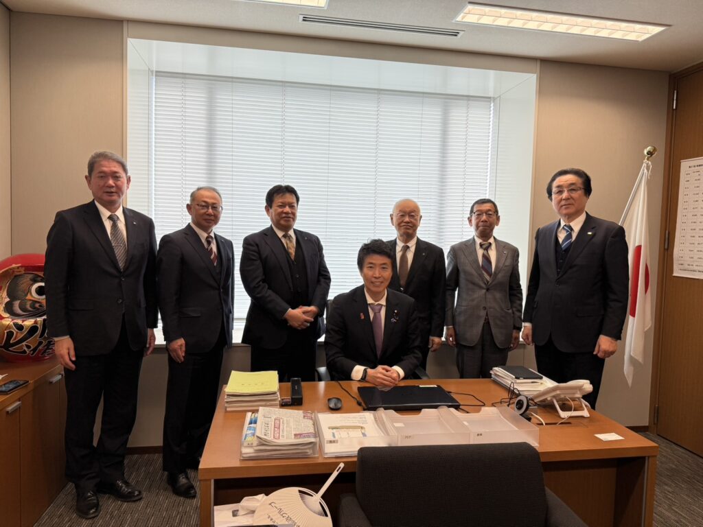 事務所訪問 2026年1月19日 最終更新日時 : 2026年1月19日 周作犬童 1月19日、茨城県中部 小松会長、茨城県東部 藤岡会長、茨城県西部 名越会長、茨城県南部 伊藤会長、茨城県北部 沼田会長、岡田OB会会長(元茨城県中部地区会長)が議員会館事務所を訪問され意見交換を行いました。 FacebookXBlueskyHatena