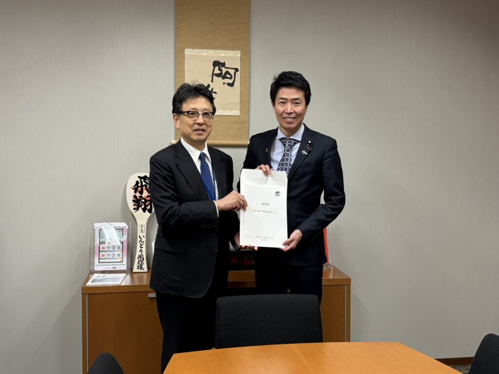 事務所訪問 2026年1月20日 最終更新日時 : 2026年1月20日 周作犬童 1月20日、熊本県熊本市長の大西 一史様が事務所へ訪問され、令和7年度 特別交付税についての『要望書』をいただきました。いただいた陳情書の実現に向け、尽力してまいる所存です。 FacebookXBlueskyHatena