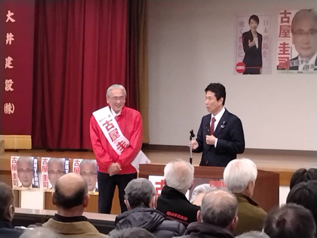 候補者応援 2026年2月1日 最終更新日時 : 2026年2月1日 周作犬童 本日(2/1)は、岐阜県第五区衆議院議員立候補者 古屋圭司個人演説会での応援のため、岐阜県恵那市へ。 FacebookXBlueskyHatena