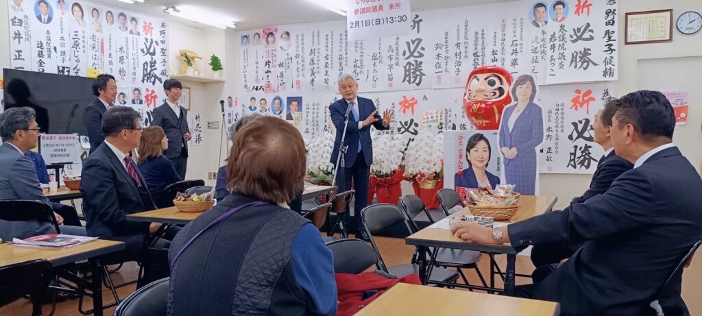 候補者応援 2026年2月1日 最終更新日時 : 2026年2月2日 周作犬童 本日(2/1)、岐阜県第一区衆議院議員 野田聖子候補者の応援のため、激励集会を行う郵便局長会の皆様とともに岐阜市内の事務所へ。 FacebookXBlueskyHatena