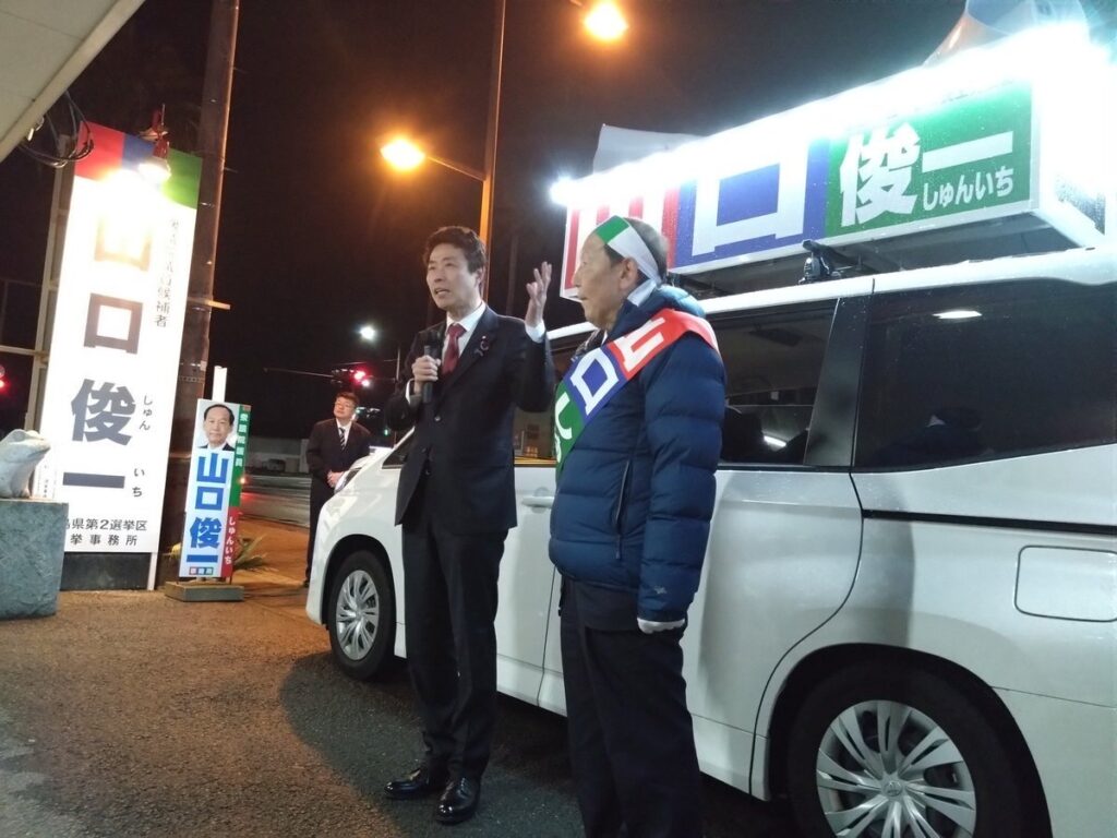 候補者応援 2026年2月7日 最終更新日時 : 2026年2月8日 周作犬童 本日(2/7)、徳島県2区、山口俊一候補のマイク納め式に参加しました。明日、いよいよ投開票日です。 FacebookXBlueskyHatena