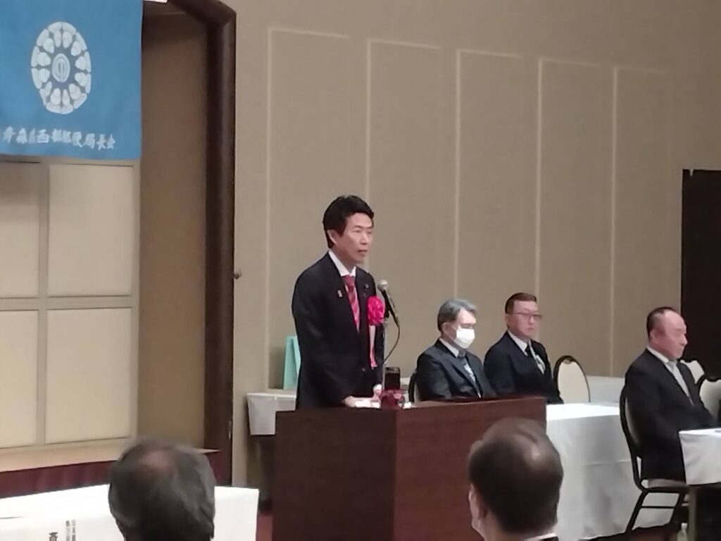 2月8日、2026年青森県西部地区郵便局長会通常総会及び懇親会に出席し、ご挨拶させて頂きました。日頃のご支援に感謝申し上げ、郵政事業を巡る現状についてお話しさせて頂くとともに、皆さまと有意義な意見交換をさせて頂きました。