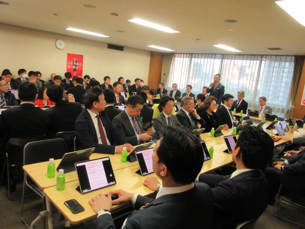 4月16日、自民党総務部会・財務金融部会・金融調査会・郵政事業に関する特命委員会 合同会議に出席しました。